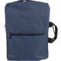 Hátizsák és laptoptáska 15"-es készülékhez. Kézipoggyász méretű. Hordozófüllel a tetején, állítható vállpántokkal és két oldalsó fogantyúval. Az állítható pántok a párnázás mögé rejthetők, így az oldalsó fogantyúkkal is hordozható. Tépőzáras laptoprekesszel és kis cipzáras zsebbel rendelkezik. Szellőző, párnázott hátoldallal. Terhelhetősége kb. 8 kg. RPET alapanyagra utaló címkével. Anyaga: 300D RPET poliészter.