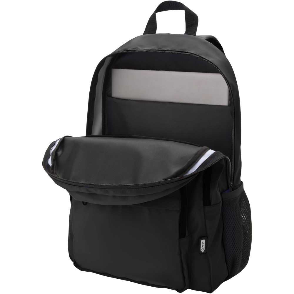 A Trend Plus hátizsák GRS tanúsítvánnyal rendelkező újrahasznosított, puha és gyűrődésálló anyagból készült, minőségi RPET béléssel. A hátizsák 15?-os laptoprekesszel, rendszerező rekesszel, cipzáras elülső zsebekkel, oldalsó rugalmas hálós zsebekkel, valamint légáteresztő hátpárnázattal és bőröndpánttal rendelkezik. Az állítható vállpántok maximális kényelmet biztosítanak. Űrtartalma: 20 liter. Teherbírás: akár 10 kg. PVC-mentes.