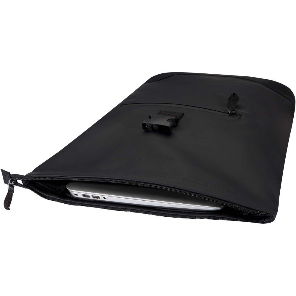 Prémium, újrahasznosított PU bőrből készült, színben harmonizáló RPET béléssel, ez a rolltop hátizsák modern megjelenést és hosszú élettartamot kínál. Vízlepergető felülete megóvja a tartalmát esőtől és nedvességtől, míg a feltekerhető zárórész rugalmas pakolást tesz lehetővé - ideális laptop hátizsákként ingázáshoz, utazáshoz vagy edzőterembe. Belsejében párnázott rekesz található, amely akár 15,6" laptopot is biztonságosan tárol, valamint egy cipzáras zseb a technikai eszközök és mindennapi kellékek rendszerezésére. A külső részen vízálló cipzárral ellátott elülső zseb biztosít gyors és biztonságos hozzáférést, míg a párnázott, állítható vállpántok és a légáteresztő hátpanel egész napos kényelmet nyújtanak.