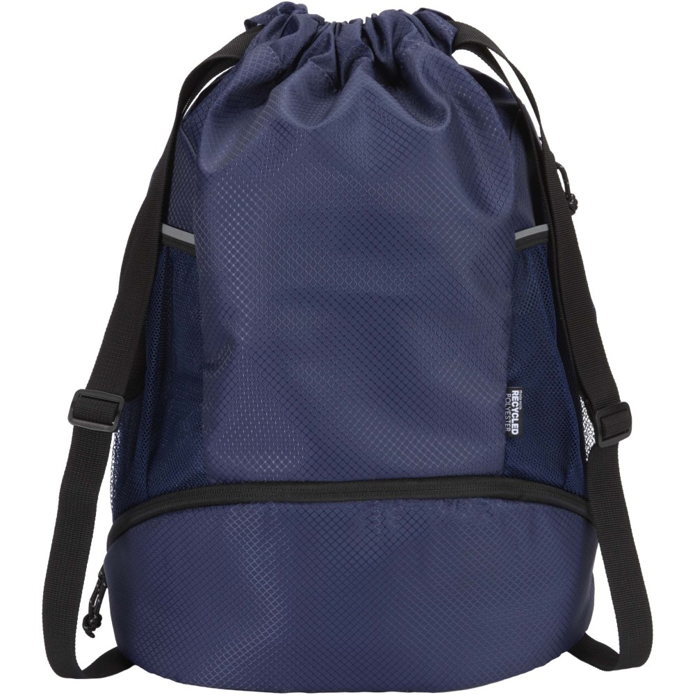 A Nomad sport húzózsinóros táska GRS tanúsítvánnyal rendelkező, újrahasznosított ripstop anyagból készült, vízlepergető felülettel, GRS tanúsítvánnyal rendelkező RPET béléssel és fényvisszaverő elemekkel. Aktív életmódot folytatók számára tervezték, ideális a mindennapi edzéshez és sporttevékenységekhez. Tágas fő rekesze: elfér benne ruházat, törölköző vagy akár egy kosárlabda is. Külön alsó rekesze biztosítja a cipők vagy használt ruhák elkülönített tárolását. Két oldalsó hálós zsebbel rendelkezik fényvisszaverő részletekkel, egy rejtett cipzáras zsebbel az értékek számára, valamint állítható hevederpántokkal a kényelmes hordozás érdekében.
