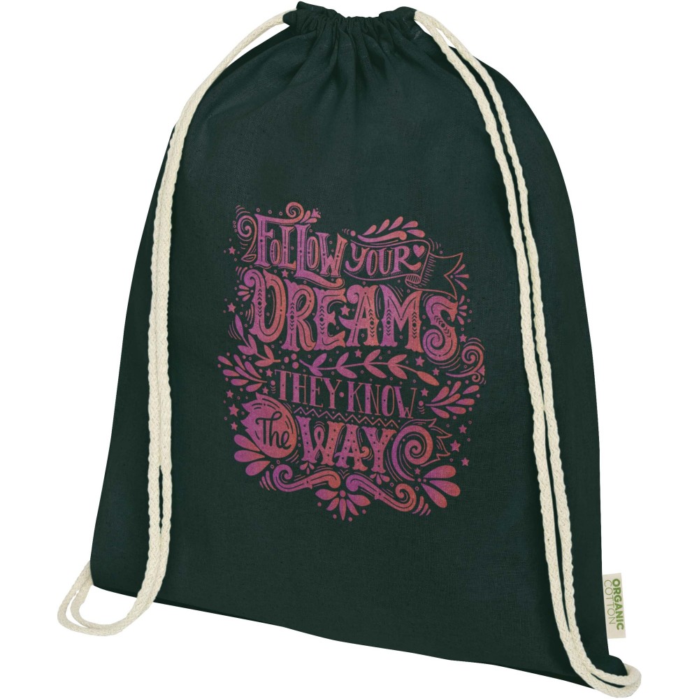 OCS tanúsítvánnyal rendelkező, 100% organikus pamutból készült húzózsinóros hátizsák környezetbarát és praktikus választás. A termék egy tágas főrekesszel és pamut zsinóros záródással rendelkezik, amely biztonságos tárolást garantál értéktárgyak számára. A táska teherbírása legfeljebb 5 kg. Űrtartalma: 5 liter. 140 g/m2 anyag.