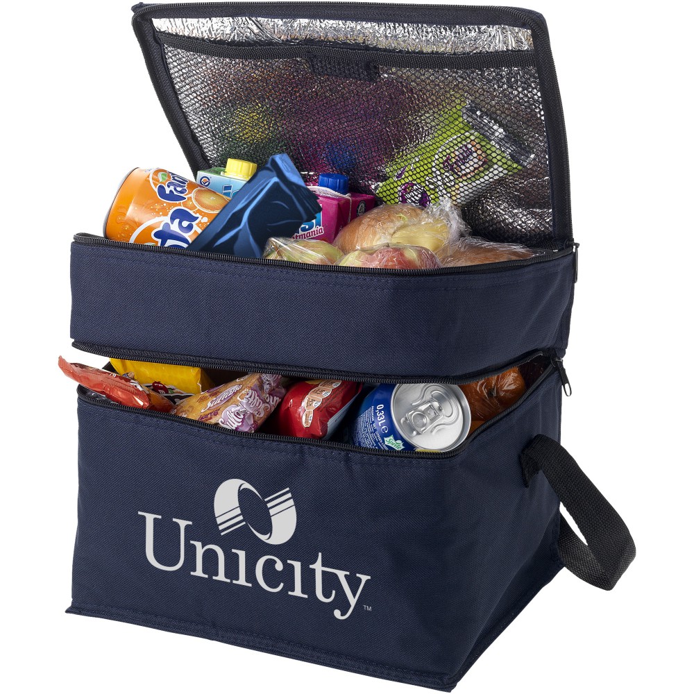 Az Oslo hűtőtáskával bármikor és bárhol hűtött italokat és harapnivalókat biztosíthat. A hűtőtáska két különálló cipzáras rekesszel rendelkezik. A felső része tökéletes az apró falatok tárolására, az alsó része pedig a nagyobb élelmiszerek tárolására. A vállpánt állítható, így a táskát mindenki könnyen hordozhatja. A hűtőtáska 600D poliészterből készült, amely egy nagy teherbírású és tartós szövet.