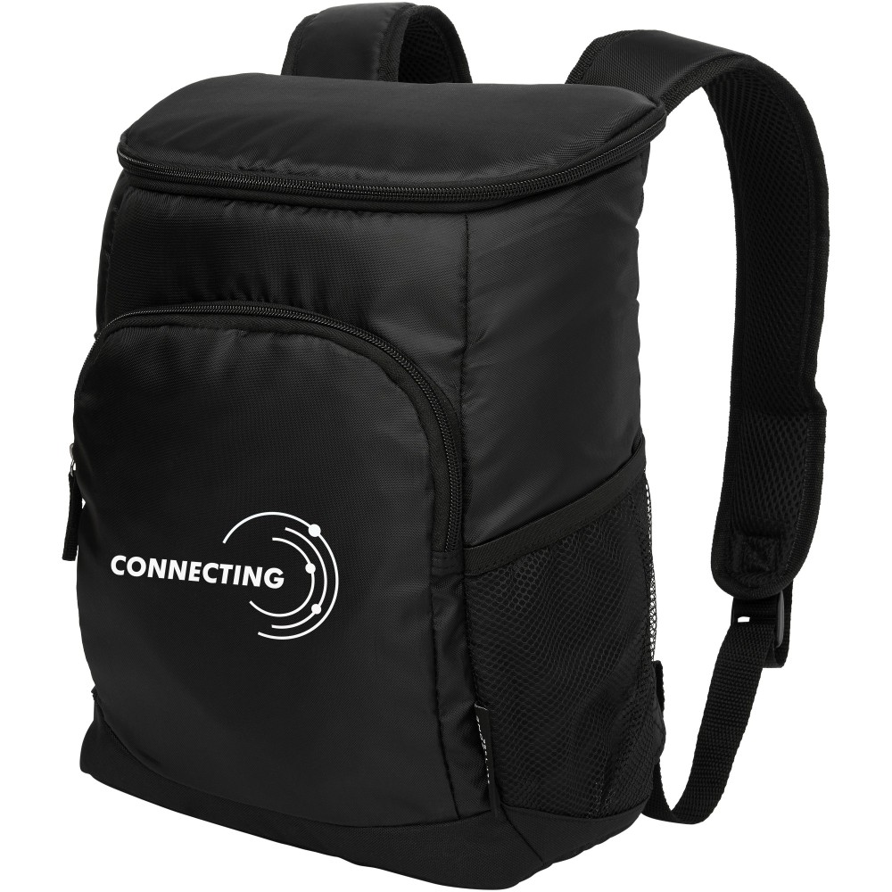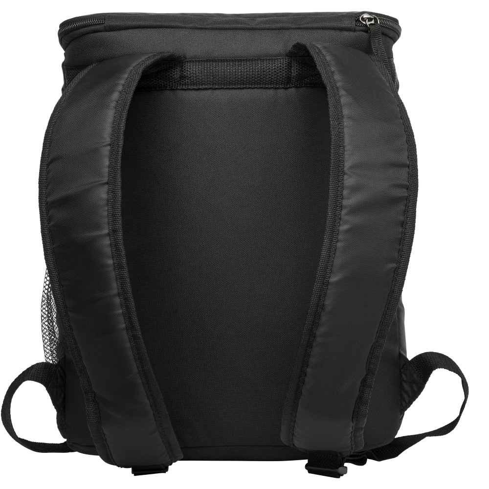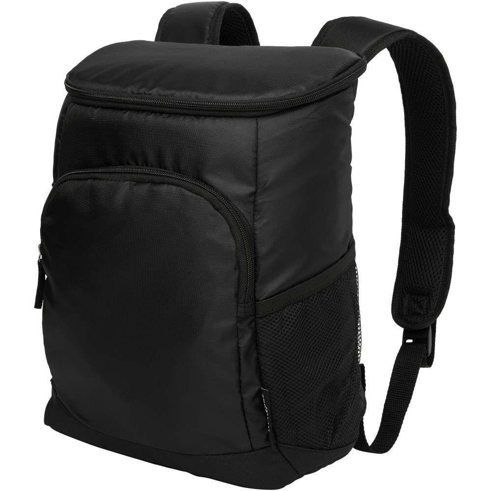 Vastag hőszigetelő réteggel ellátott hűtőhátizsák egy cipzáras fő résszel, cipzáras első zsebbel, hálós oldalzsebbel és párnázott állítható vállpánttal. Vízálló, könnyen tisztítható PEVA béléssel. 18 doboz számára. PVC-mentes. 420D poliészter.