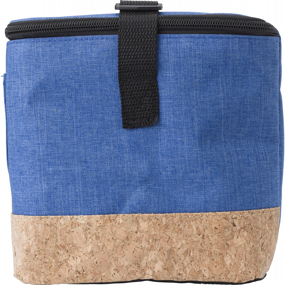 Poliészter (600D) hűtőtáska cipzárral és parafa aljjal, hat darab 0,5 literes doboz számára. A belső anyag EVA.