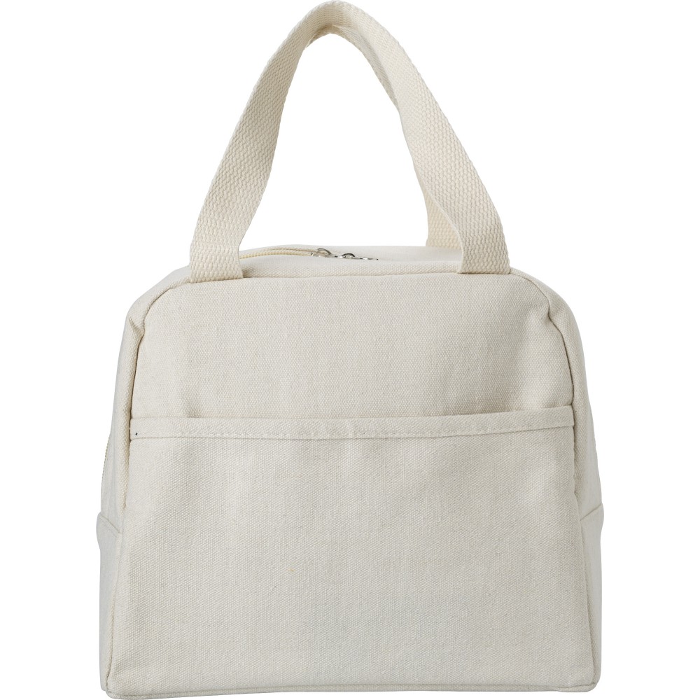 Hűtőtáska egy nagy cipzáras rekesszel, egy kis elülső zsebbel. Pamut (280 g/m2) anyag PEVA béléssel.