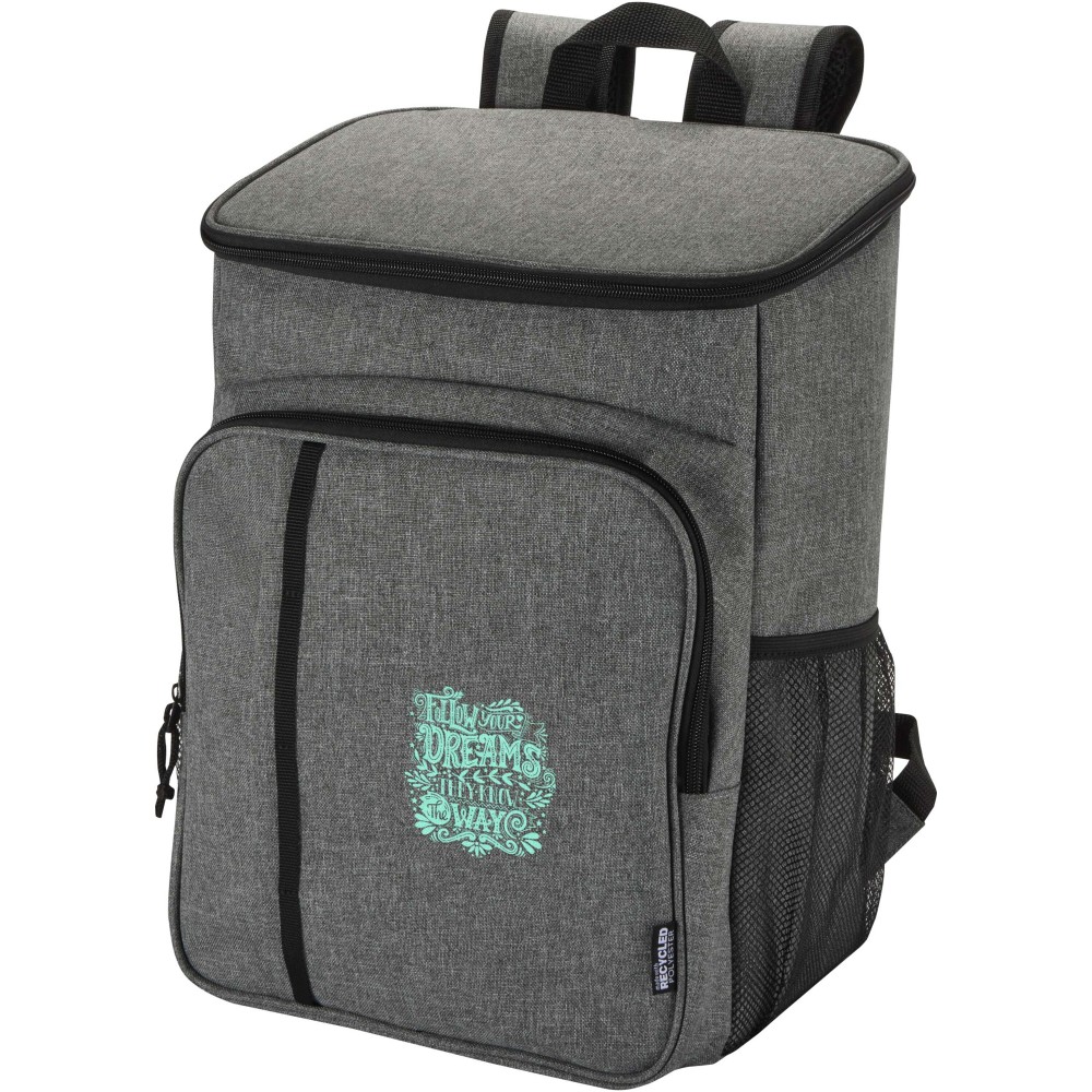 A Tundra piknik hűtőhátizsák GRS tanúsítvánnyal rendelkező újrahasznosított anyagokból készült, és egy kétszemélyes, élelmiszerbiztonsági szempontból tesztelt műanyagból készült, többször használható evőeszközkészletet is tartalmaz. A szivárgásmentes főrekesz nagy sűrűségű habszigeteléssel és hegesztett PEVA béléssel biztosítja az ételek és italok hűtését órákon át. A praktikus kialakítás érdekében a termék két oldalsó hálós zsebbel, egy evőeszközökkel (két kés, két villa, két pohár és két tányér) felszerelt cipzáras elülső zsebbel, valamint egy felső kiegészítő cipzáras zsebbel rendelkezik. A 20 literes űrtartalmú hátizsák a párnázott, állítható vállpántok és a stabil hevederes hordfül segítségével kényelmesen szállítható, így ideális kiegészítő piknikezéshez, szabadtéri étkezésekhez, kempingezéshez vagy strandoláshoz.