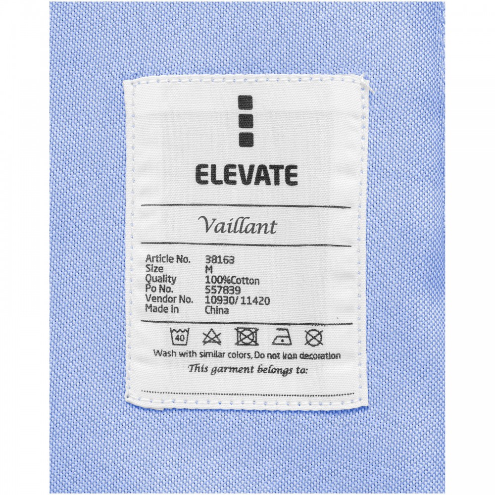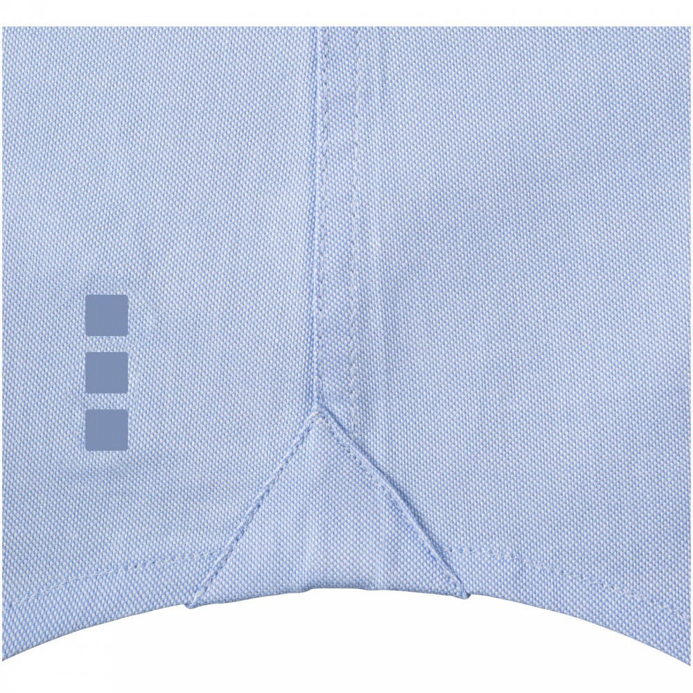 Normál szabásvonal. Elevate logóval gravírozott, fehér gombok. Alulról a második gomblyuk narancssárga öltésekkel dekorálva. Két gombos, állítható kézelő gombolás. Tónusos logónyomat hátul. Szatén szegély a nyakvonalban. Legombolható gallér (férfi). 100% pamut Oxford anyag.