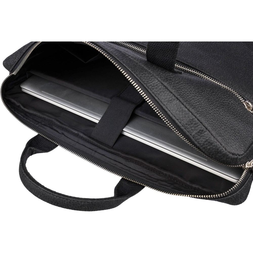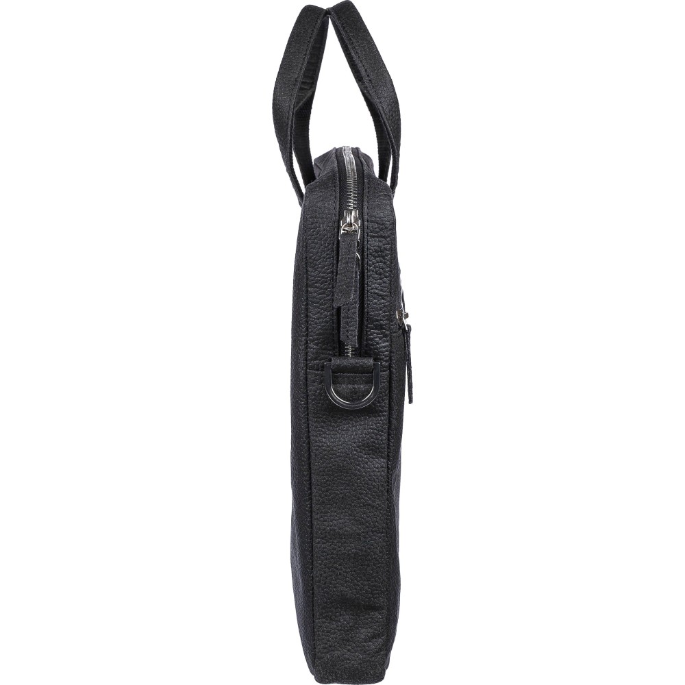 Laptoptáska paradicsom felhasználásával (15 inch), cipzáras rekeszekkel az elején és a tetején, valamint párnázott laptop zsebbel, tépőzáras záródással. Belsejében több kisebb zseb található. Állítható vállpántokkal rendelkezik. Anyagösszetétel: 50% pamut, 30% paradicsom, 20% biopolimer.