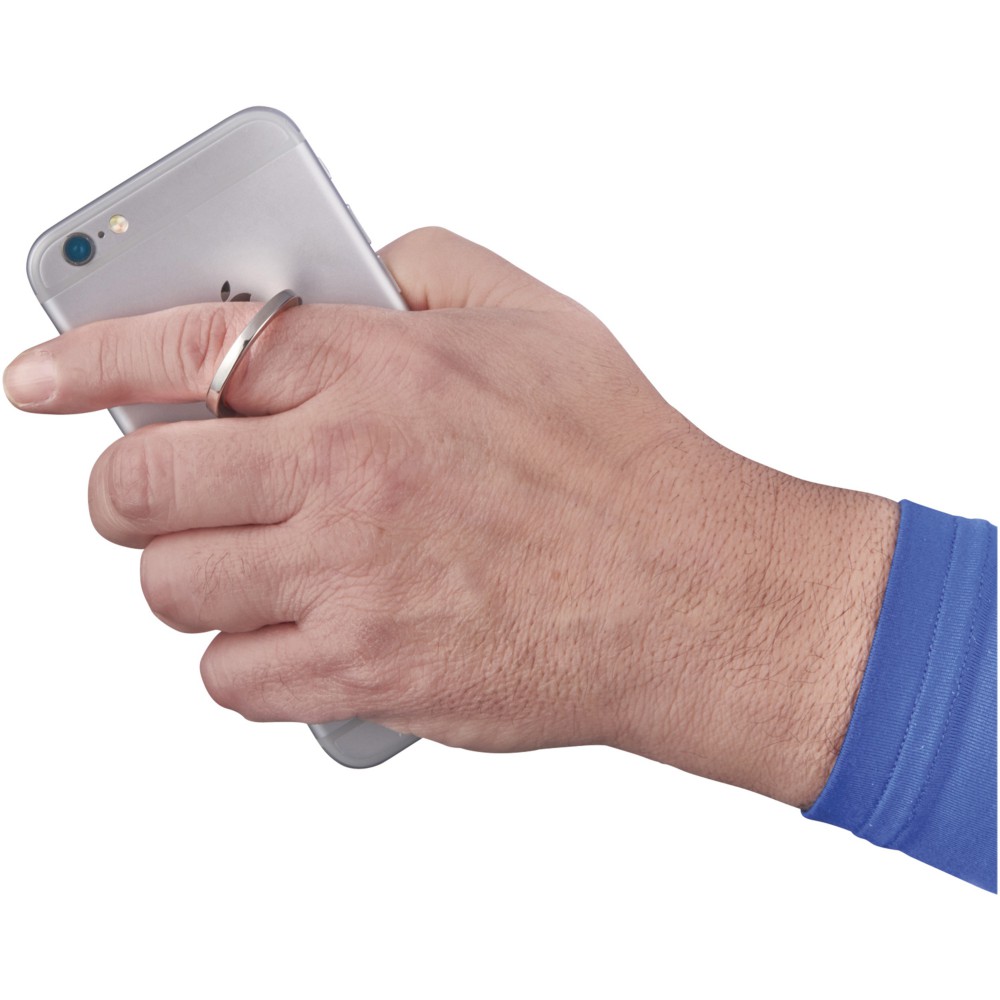Alumínium gyűrű okostelefonok állványaként használható vagy a kézbentartás biztosítása érdekében. 360 fokban forgatható. Rögzítése eszközünk hátuljára öntapadóval történik .Cink ötvözet.