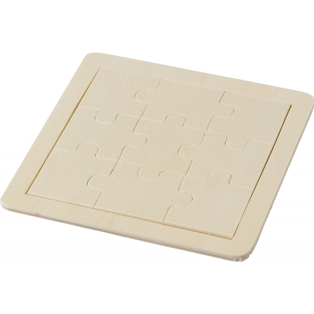 9 darabos fa kirakó játék. A kirakó felület egyedi grafikával dekorálható.