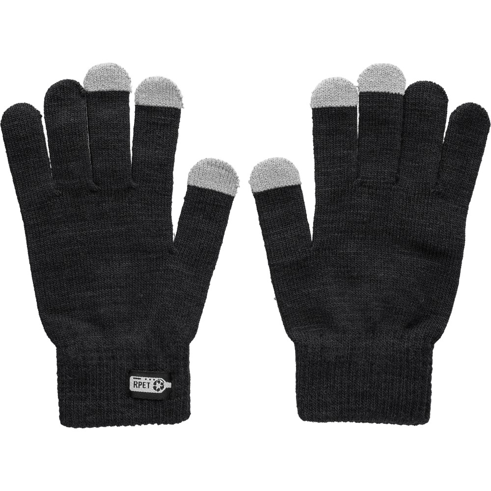 rPET érintőképernyős kesztyű három ujján vezetőképes bevonattal a képernyőhasználathoz. Kívül rPET címkével.