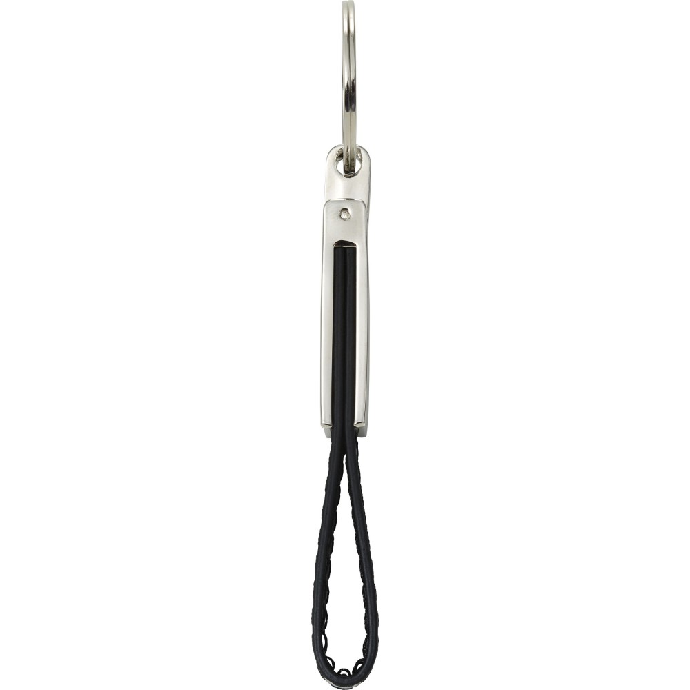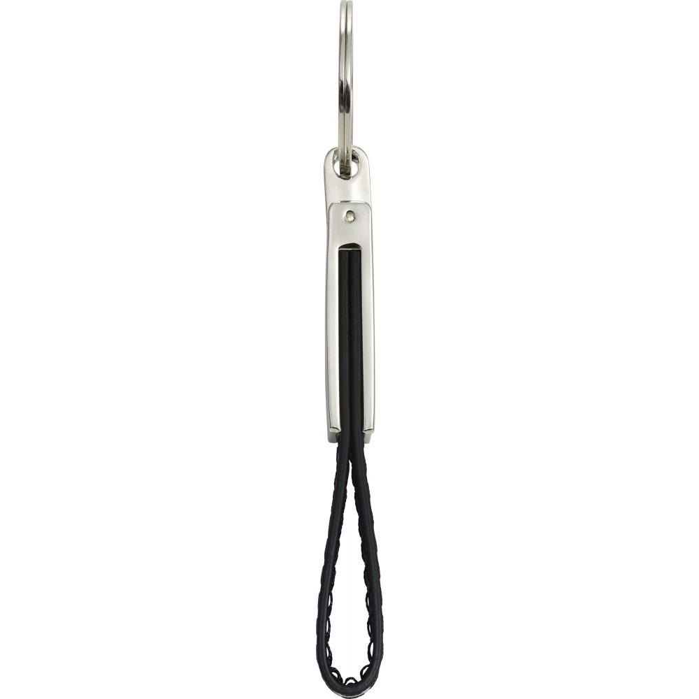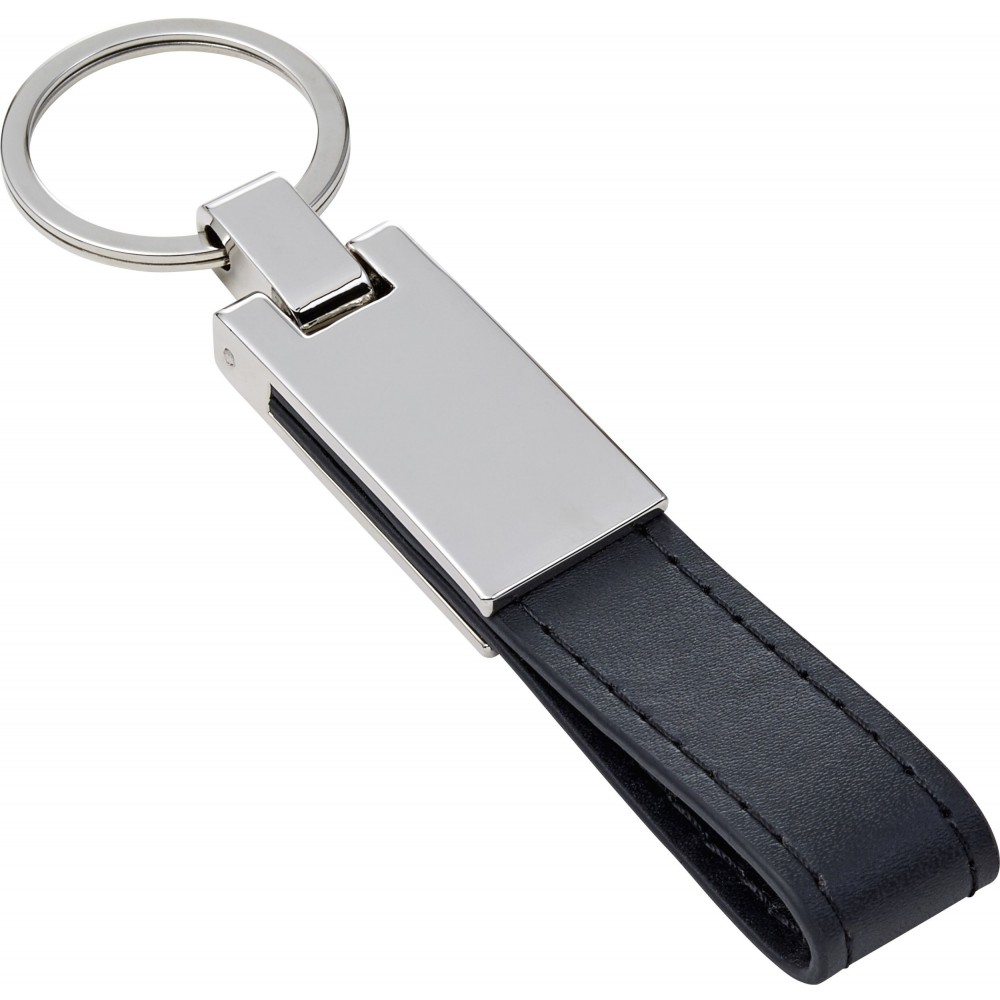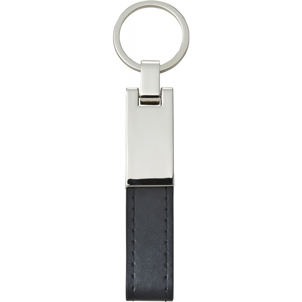 Ezüstözött kulcstartó PU hurokkal. Csomagolása fekete díszdoboz. PU, acél