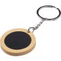 Kulcstartó gumis felületű, rozsdamentes acél gravírozólappal. A gravírozás utáni szín fényes króm. Egyedi csomagolásban, barna kraftpapír tokban. Anyaga: bambusz.