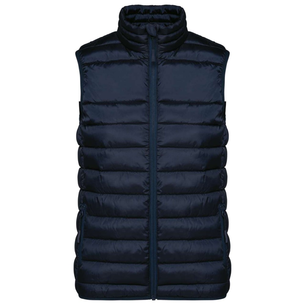 100% poliészter, 290T, 100% poliészter bélés. Egyenes szabás, saját tárolózsákba hajtogatható. 2 cipzáras oldalzseb színben illeszkedő nylon zipzárral. Vízszintes irányú párnázottság, nagy emblémázási felület a mellkason és a háton. Rugkörtes rész a karnyílásnál és a szegélyen, akasztó a nyak belső részén. Eltávolítható címke.