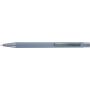 Golyóstoll gumis bevonattal, kék tollbetéttel. A hegy, klipsz és a nyomógomb egyforma sötétszürke színű. ABS, alumínium.