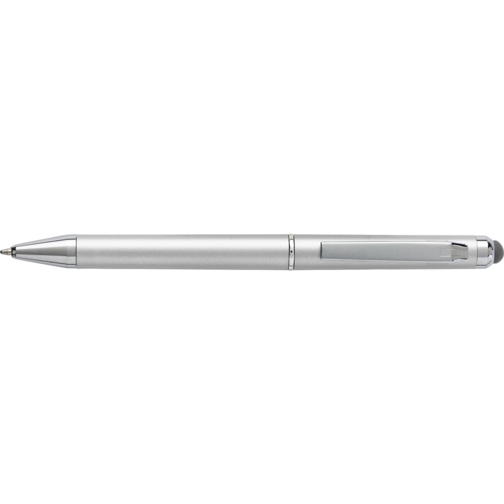 Műanyag golyóstoll érintővel, kék tollbetéttel, ezüst