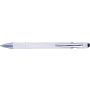 Golyóstoll kék tollbetéttel, gumis felülettel és érintővel kapacitív képernyőkhöz. Kék tollbetéttel. A hegy és a klipsz ezüst színű műanyag. ABS, alumínium.