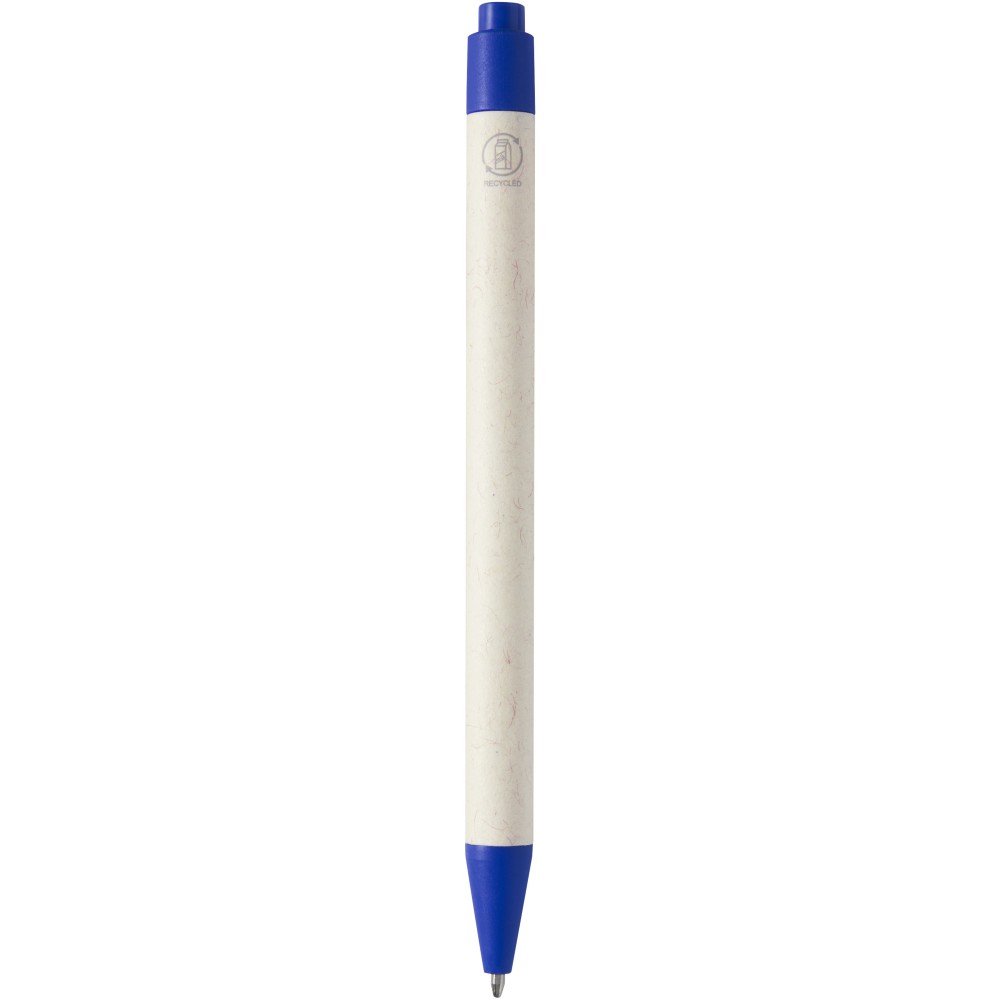 Click action golyóstoll újrahasznosított tejesdobozokból készült testtel (akár 70%). A gomb, a klipsz és a hegy PLA műanyagból készült. A használt tejesdobozokat összegyűjtik, válogatják, feldolgozzák és papírrá alakítják, így a hulladékból hasznos termékek készülnek.
