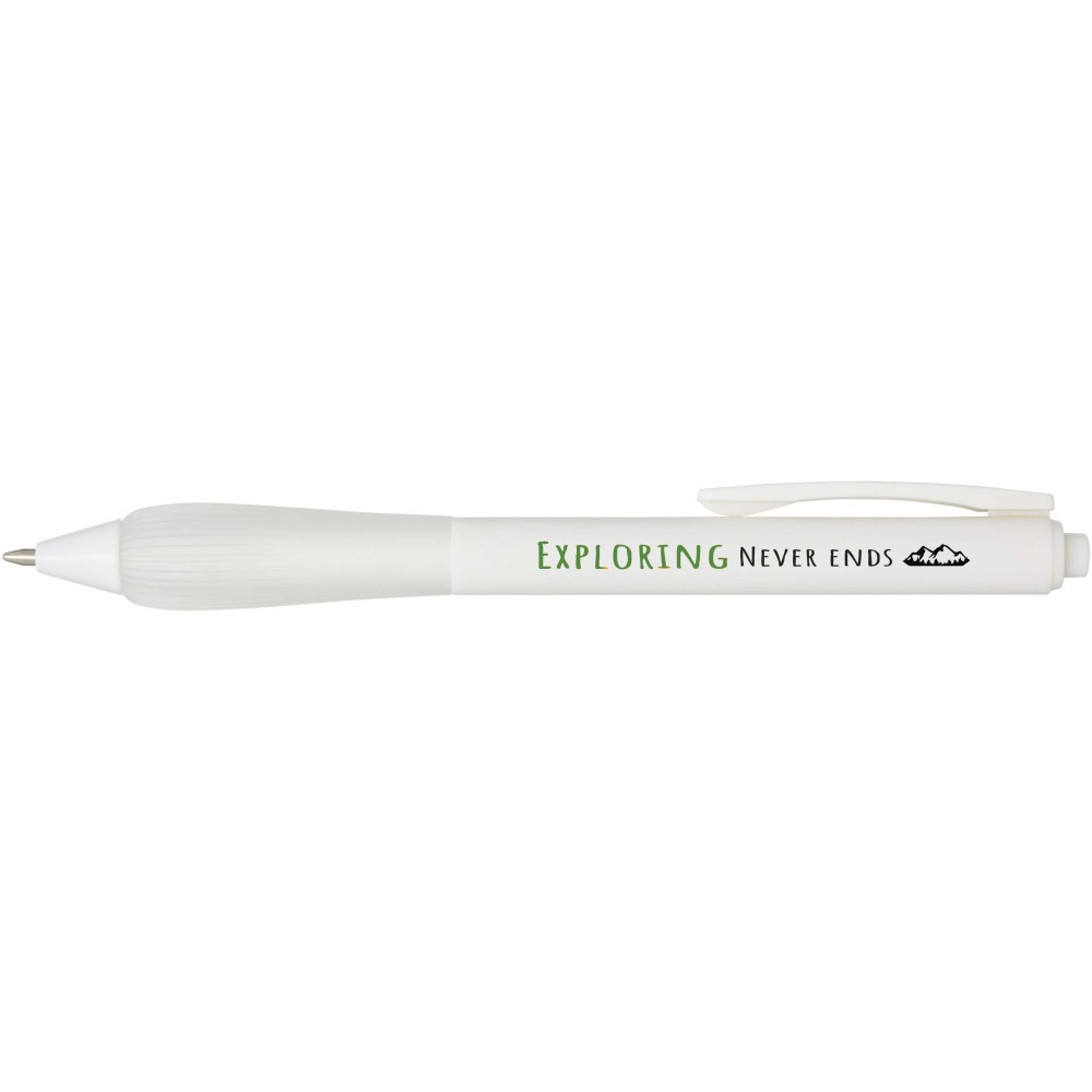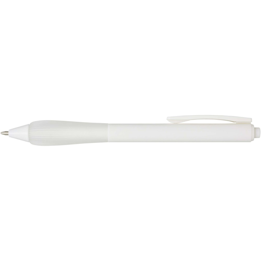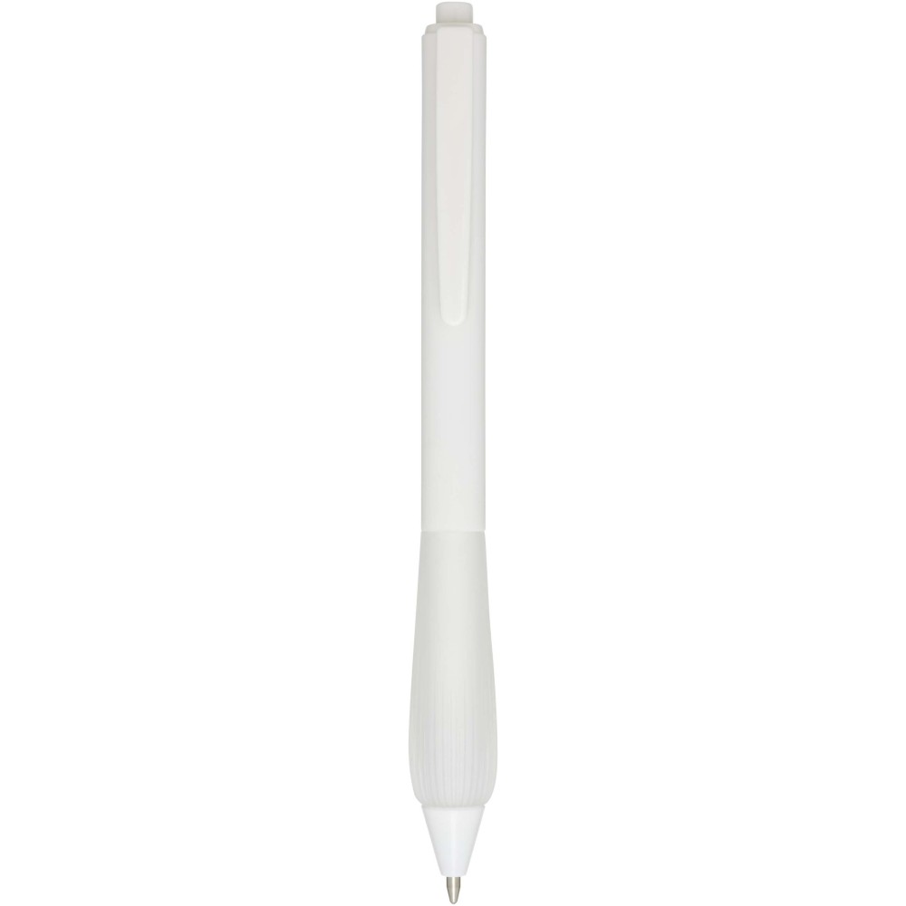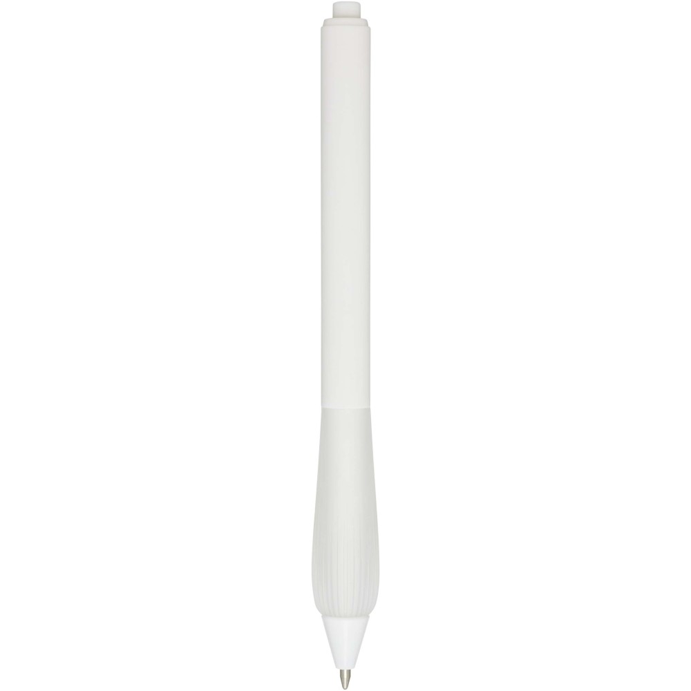Újrahasznosított műanyag golyóstoll gumírozott tolltesttel és TPR anyagból készült fogórésszel. Kék tollbetéttel. Írási hossz: 1000 méter. Hegyméret: 1,0 mm.