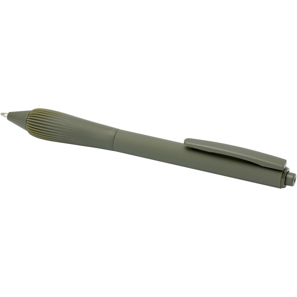 Újrahasznosított műanyag golyóstoll gumírozott tolltesttel és TPR anyagból készült fogórésszel. Kék tollbetéttel. Írási hossz: 1000 méter. Hegyméret: 1,0 mm.