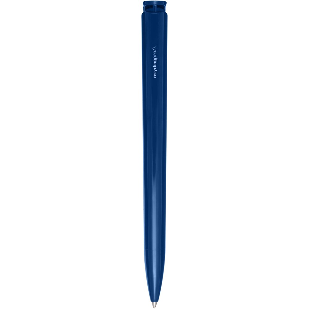 Golyóstoll, amelynek teste és klipsze újrahasznosított műanyagból készült, a hegy pedig rozsdamentes acélból. Kék tollbetéttel. Íráshossz: 3000 méter. Hegyméret: 1,00 mm. Németországban készült.