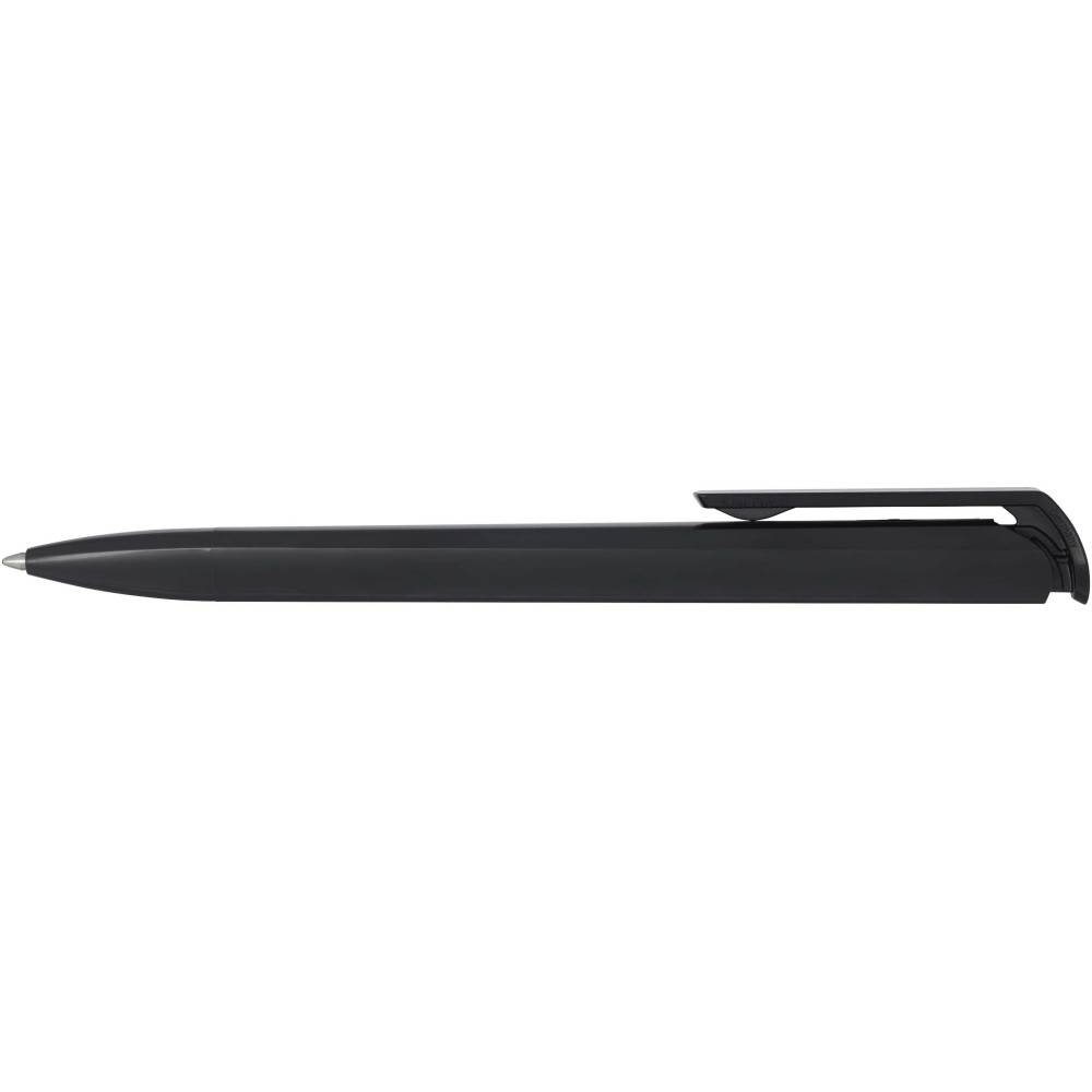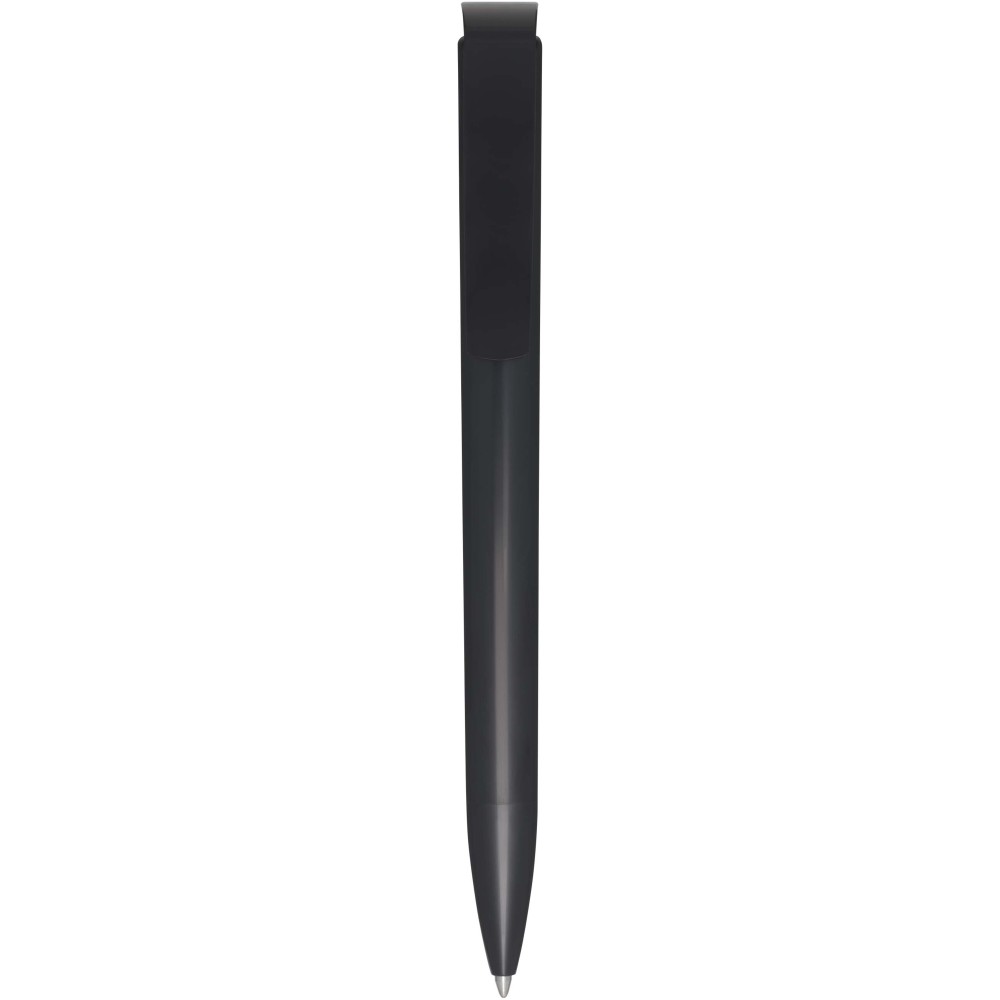 Golyóstoll, amelynek teste és klipsze újrahasznosított műanyagból készült, a hegy pedig rozsdamentes acélból. Kék tollbetéttel. Íráshossz: 3000 méter. Hegyméret: 1,00 mm. Németországban készült.
