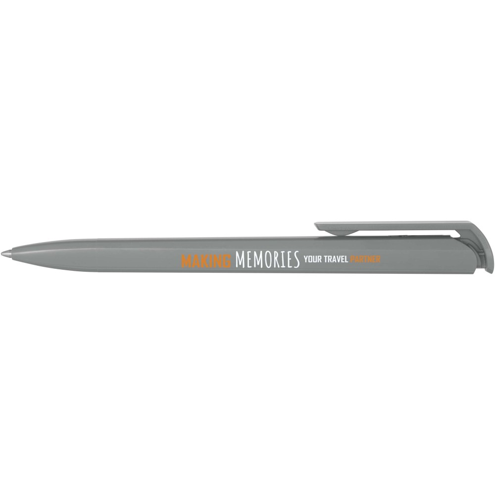 Golyóstoll, amelynek teste és klipsze újrahasznosított műanyagból készült, a hegy pedig rozsdamentes acélból. Fekete tollbetéttel. Íráshossz: 3000 méter. Hegyméret: 1,00 mm. Németországban készült.