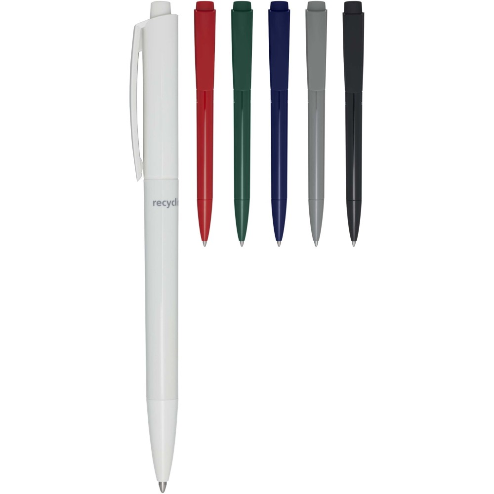 Golyóstoll, amelynek teste és klipsze újrahasznosított műanyagból, hegye pedig rozsdamentes acélból készült. Fekete tollbetéttel. Íráshossz: 3000 méter. Hegyméret: 1,00 mm. Németországban készült.