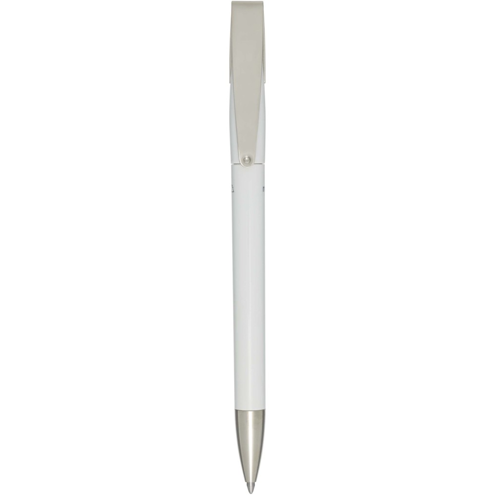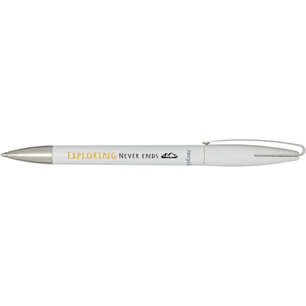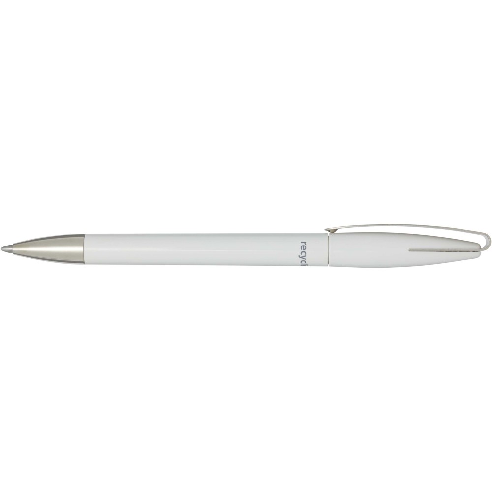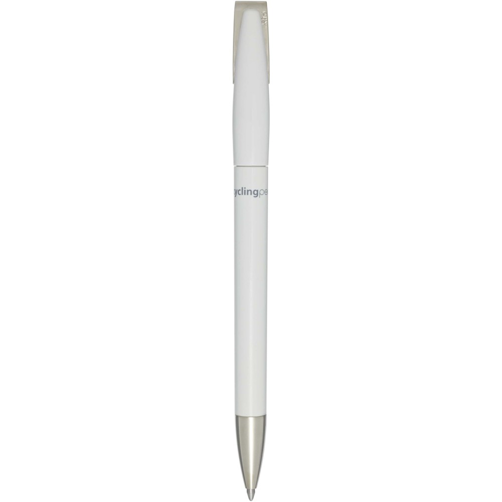 Golyóstoll, amelynek teste és klipsze újrahasznosított műanyagból, hegye pedig rozsdamentes acélból készült. Kék tollbetéttel. Íráshossz: 3000 méter. Hegyméret: 1,00 mm. Németországban készült.