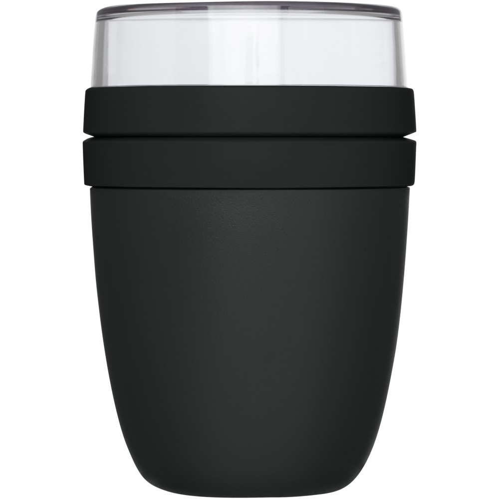 Ételtartó edény két rekesszel. Mindkét tartálynak külön fedele van. A felső, átlátszó rész űrtartalma 200 ml. Az alsó edény 500 ml-es. Fagyasztóba, mikrohullámú sütőbe (fedél nélkül), és mosogatógépbe tehető. A felső, átlátszó rész nem tehető mikrohullámú sütőbe. Szivárgásmentes. BPA mentes. PP műanyag, PCTG műanyag.