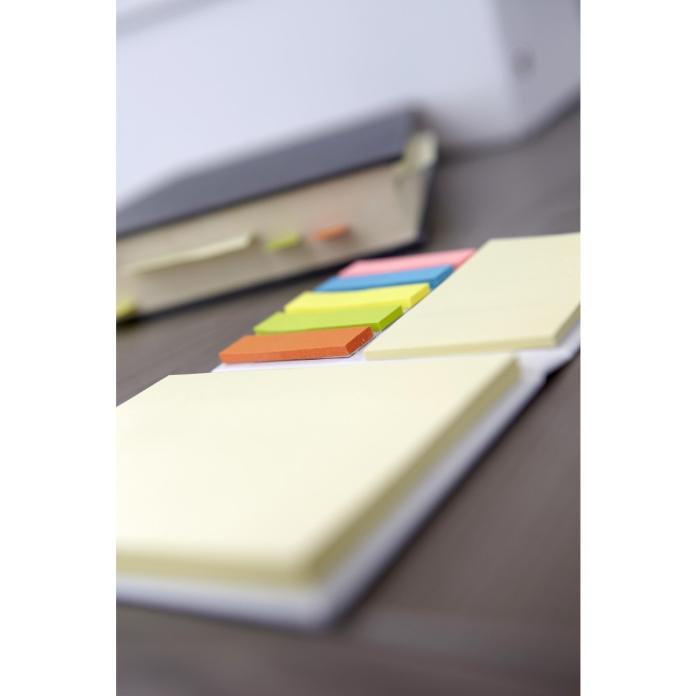 Jegyzettömb és indexlapok karton borítóval. Tartalma: összesen 100 db öntapadó jegyzetlap.