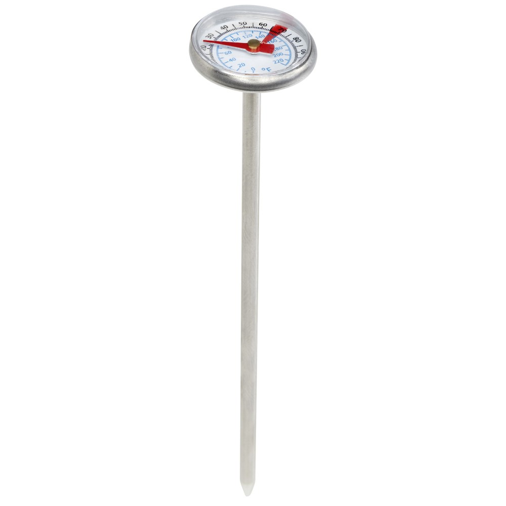 BBQ hőmérő Celsius és Fahrenheit mérési tartományokkal. A mechanikai indukció közvetlenül és pontosan mérhető a serpenyőben sütéskor vagy a grill hőmérsékletének szabályozásához. A tartós, rozsdamentes acél burkolat szilárdságot és korrózióállóságot biztosít. Könnyen használható és könnyen tisztítható.