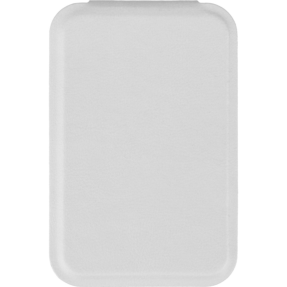 Üvegtükör összehajtható, újrahasznosított PU borítással, amely kinyitva álló helyzetben használható. A borításon dombornyomott, újrahasznosított alapanyagra utaló logó található. Papírtasakba csomagolva.