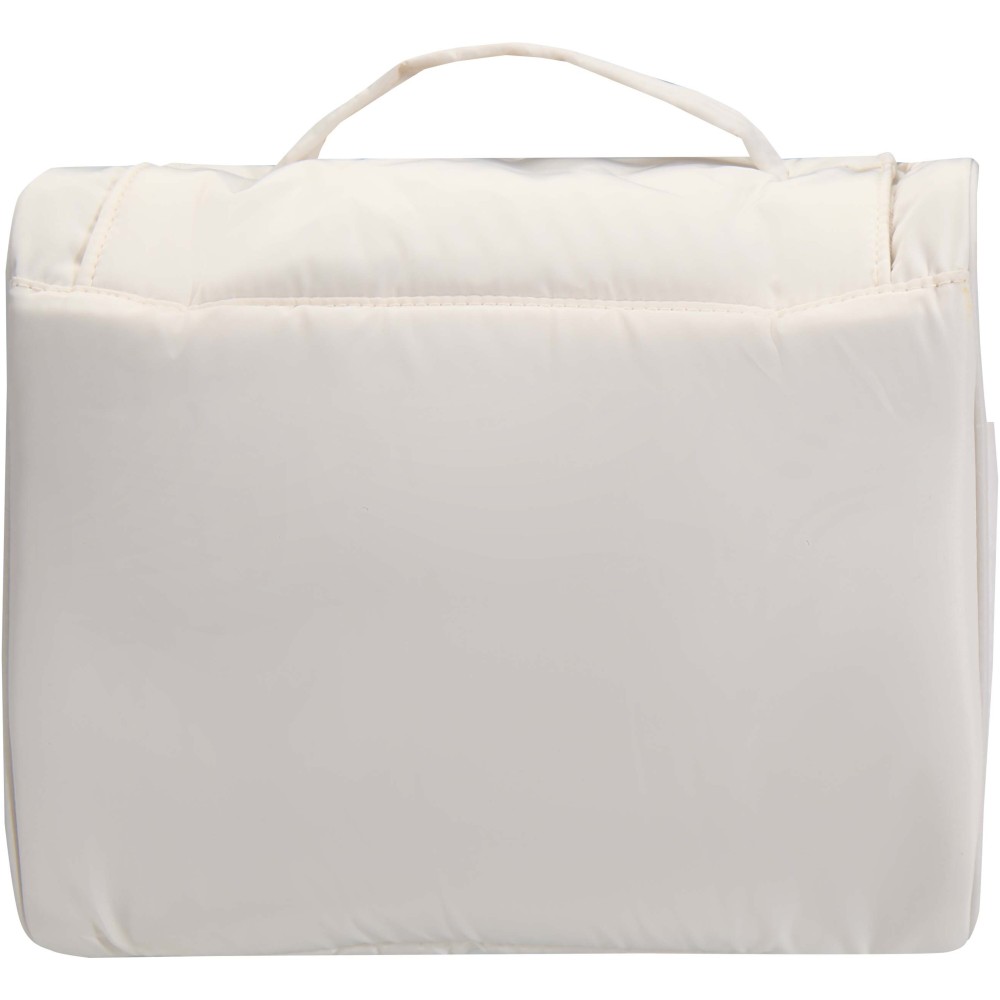 A Puffer felakasztható piperetáska GRS tanúsítvánnyal rendelkező újrahasznosított alapanyagokból készül, egyedi kialakítással a mindennapi kényelem érdekében. A 8 literes neszesszer tágas fő rekesszel rendelkezik, hat belső zsebbel, két külső oldalzsebbel, valamint egy praktikus akasztóval, amely ajtóra vagy törölközőtartóra rögzíthető. A párnázott fogantyú megkönnyíti a hordozást, míg a jellegzetes puffer stílusú párnázás egyszerre biztosít védelmet és esztétikus megjelenést. Könnyű és vízlepergető kialakításának köszönhetően utazás közben is rendezetten és biztonságosan tartja a legfontosabb tisztálkodási kellékeket.