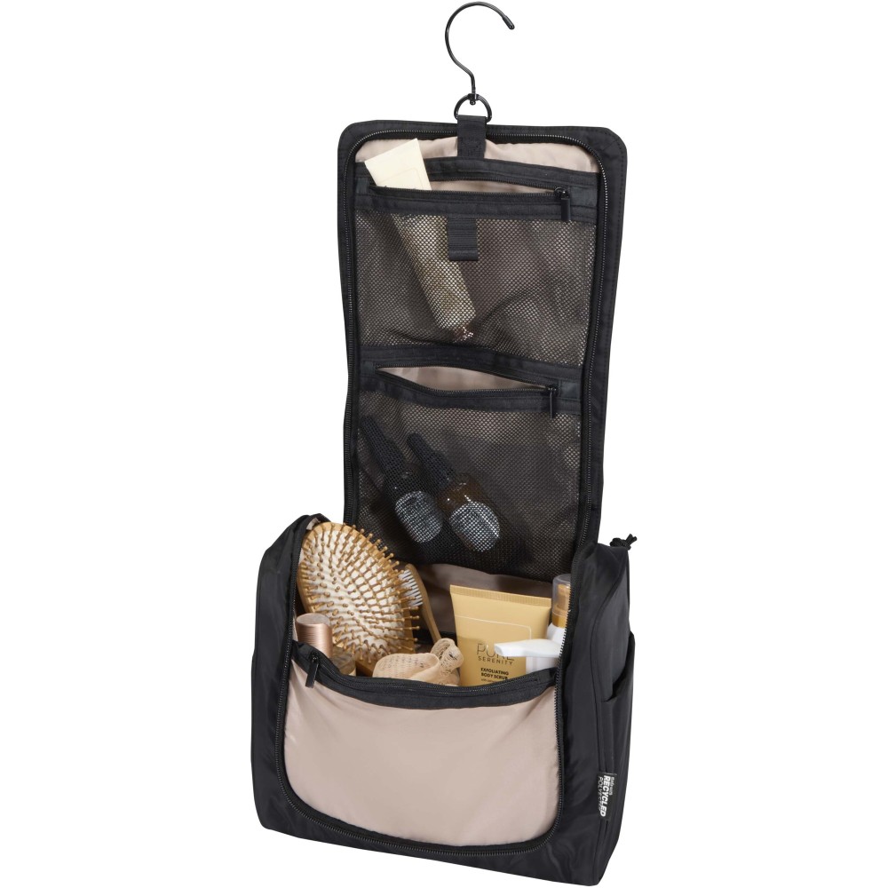 A Puffer felakasztható piperetáska GRS tanúsítvánnyal rendelkező újrahasznosított alapanyagokból készül, egyedi kialakítással a mindennapi kényelem érdekében. A 8 literes neszesszer tágas fő rekesszel rendelkezik, hat belső zsebbel, két külső oldalzsebbel, valamint egy praktikus akasztóval, amely ajtóra vagy törölközőtartóra rögzíthető. A párnázott fogantyú megkönnyíti a hordozást, míg a jellegzetes puffer stílusú párnázás egyszerre biztosít védelmet és esztétikus megjelenést. Könnyű és vízlepergető kialakításának köszönhetően utazás közben is rendezetten és biztonságosan tartja a legfontosabb tisztálkodási kellékeket.