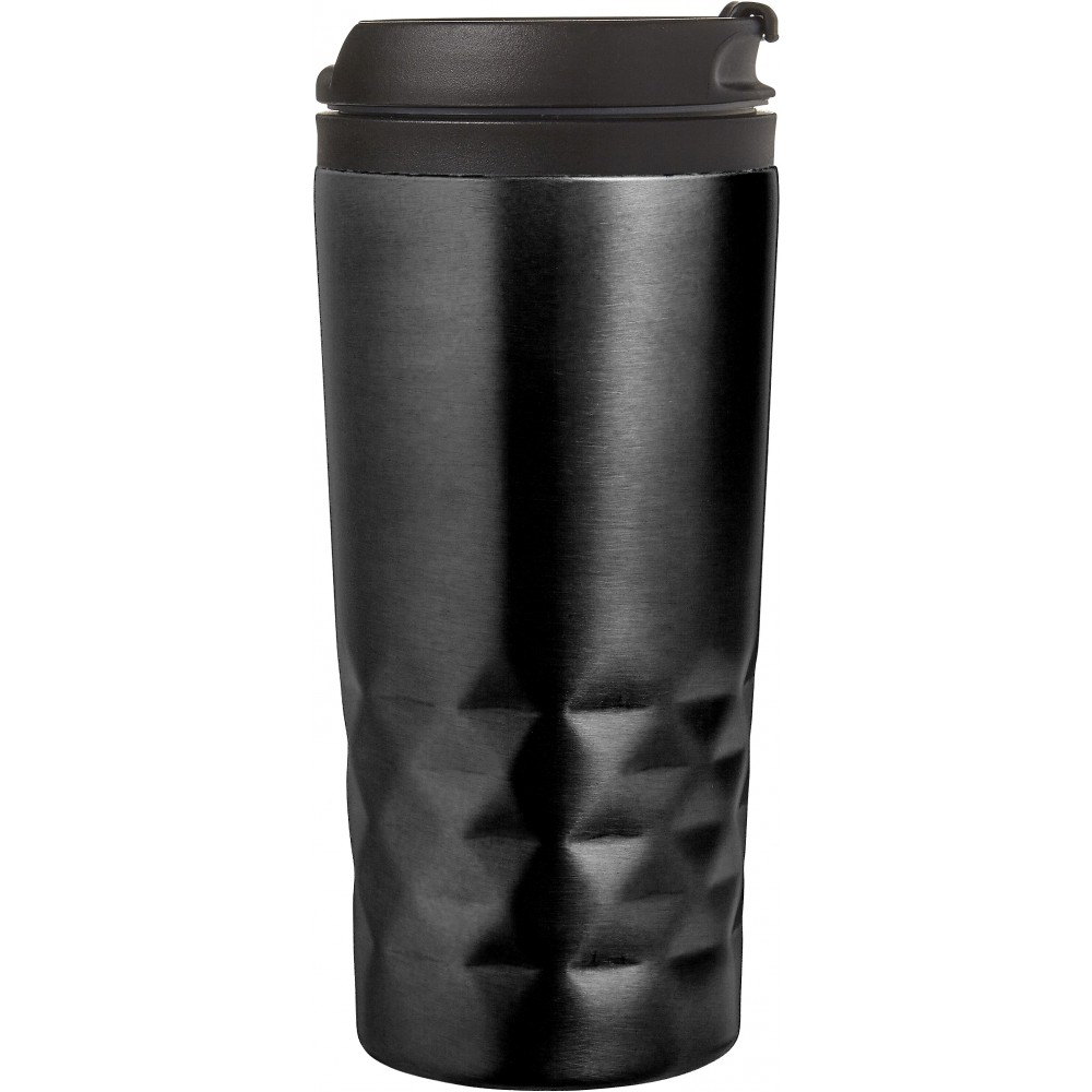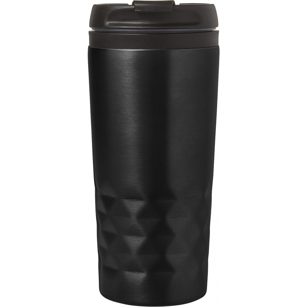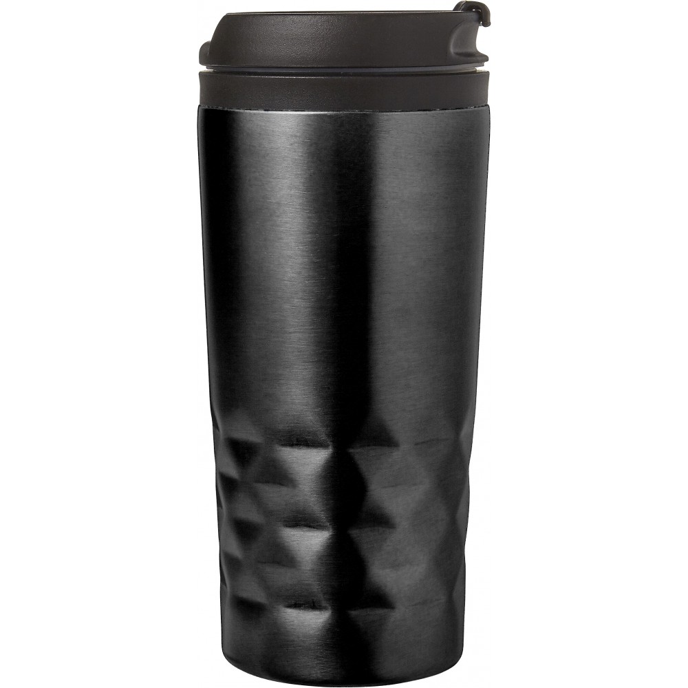 Duplafalú fedeles pohár. 300 ml. Rozsdamentes acél és BPA-mentes műanyag. Nem szivárgásmentes és nem mosogatógépálló termék.