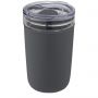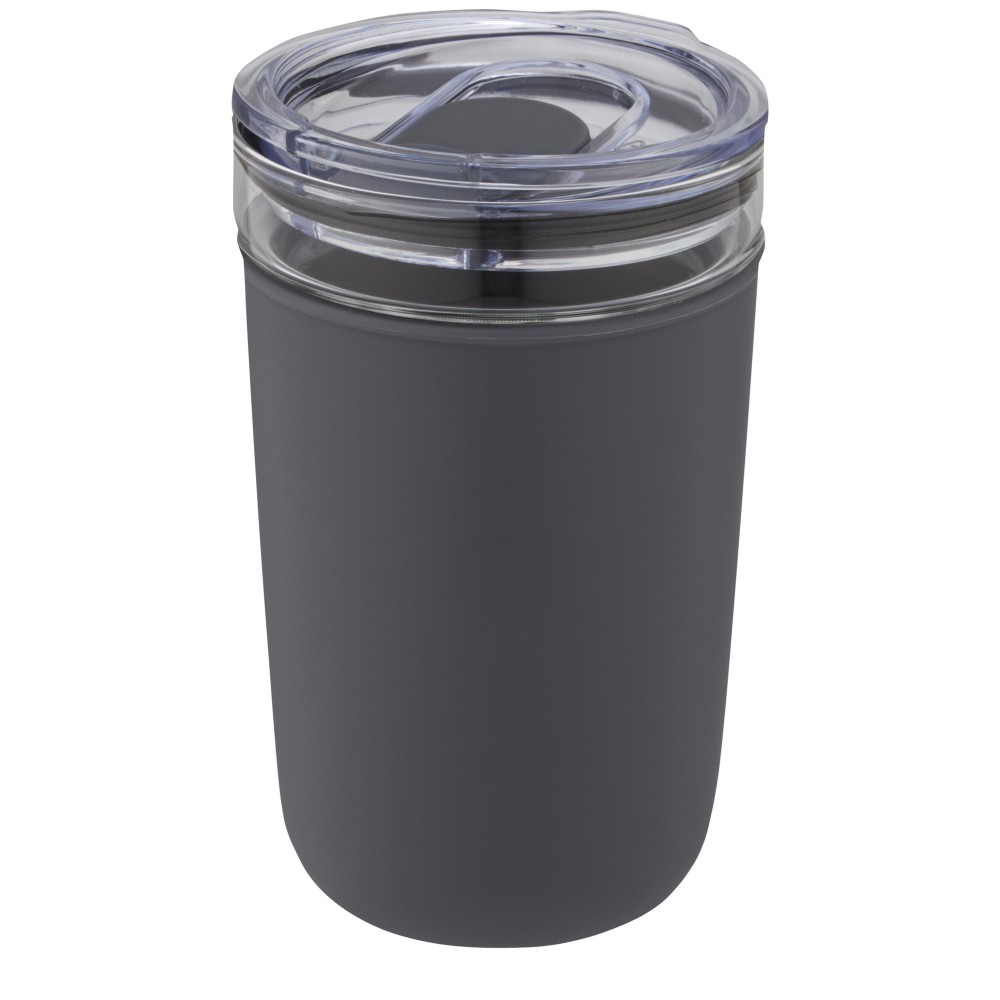 Újrahasznosított műanyag tokkal védett üvegpohár. A pohár 100%-ban tartós boroszilikát üvegből készült, amely megőrzi az ital frissességét, és nem tartalmaz semmilyen káros vegyszert. BPA-mentes, a német élelmiszerbiztonsági törvény (LFGB) szerint tesztelt és jóváhagyott. Ftaláttartalomra tesztelve és jóváhagyva a REACH előírásai szerint. A pohár a legtöbb kávéfőző alá illeszkedik. Nem szivárgásmentes. Szénsavas italokkal nem használható. Mosogatógépben mosható, de mikrohullámú sütőben történő melegítésre nem alkalmas. Űrtartalom: 420 ml. Újrahasznosított karton díszdobozban.