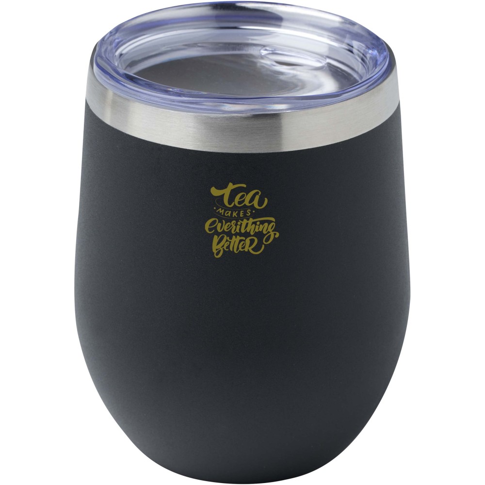 A Corzo RCS tanúsítvánnyal rendelkező rozsdamentes acélból készült, és duplafalú vákuum konstrukcióval rendelkezik réz szigeteléssel, amely 6 órán keresztül melegen, vagy 24 órán keresztül hidegen tartja az italokat. A konstrukció megakadályozza a kondenzációt a csésze külsején. Könnyen használható, nyomófedeles kialakítás. Az alsó részén porfestett bevonat található. Széles nyílás a kényelmes töltéshez és öntéshez. Űrtartalom: 350 ml. Újrahasznosított kartondobozban szállítjuk.