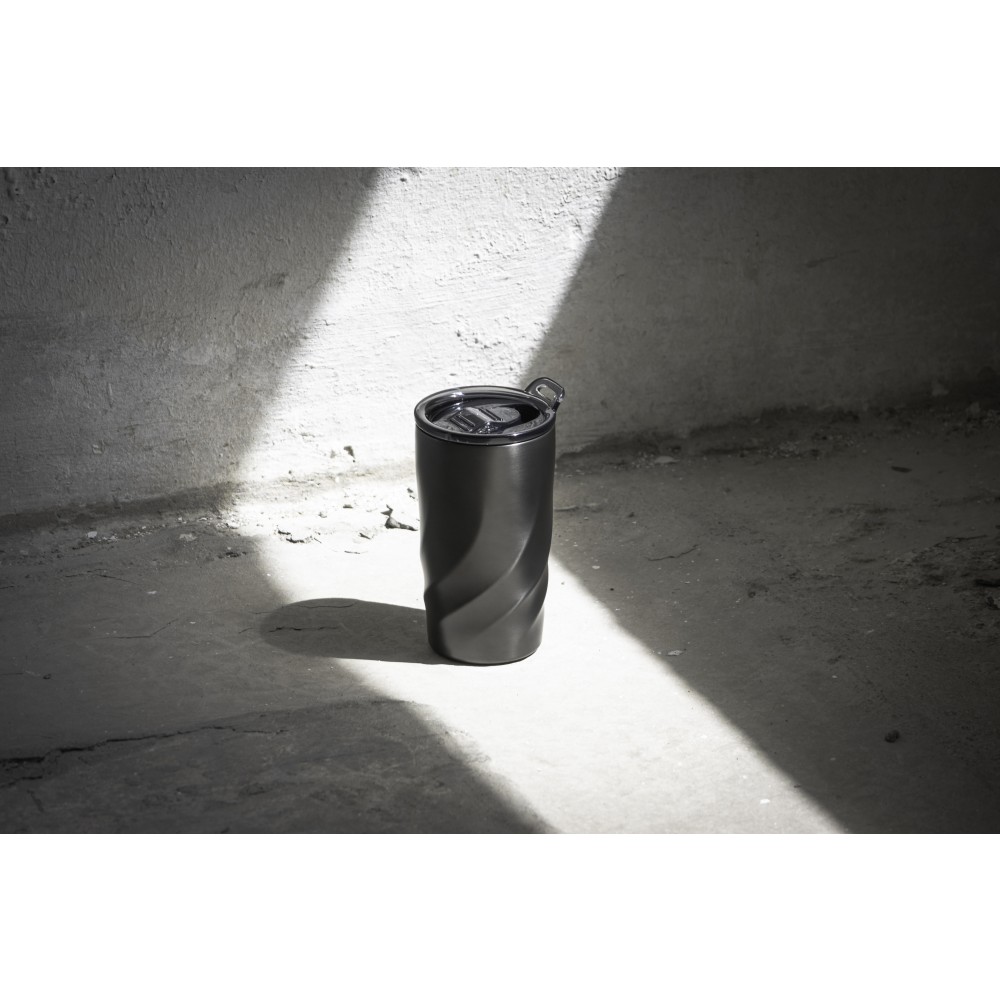 A Vortex Calix utazóbögre ötvözi a luxust és a fenntarthatóságot, újrahasznosított 304 rozsdamentes acélból készült, a környezettudatos stílus megnyilvánulásaként. A csavaros, szivárgásmentes fedéllel ellátott bögrét úgy tervezték, hogy habzó italokat is tarthassunk benne, a kupak pedig egy hordozóhurokkal rendelkezik, amelyhez opcionális vállpánt csatlakoztatható. A Coppertech duplafalú szigeteléssel ez a 400 ml-es pohár akár 12 órán át hidegen, vagy 4 órán át melegen tartja az italokat. A tartós és mosogatógépben mosható Vortex Calix egyszerre kínál funkcionalitást és tartós hőmérséklet-szabályozást az italok számára.