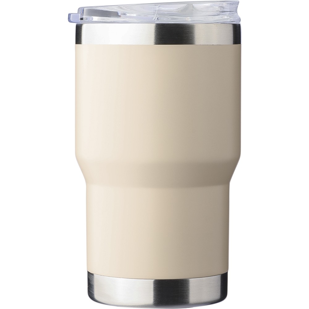 Újrahasznosított rozsdamentes acél kávésbögre, 350 ml. A belső kerámia bevonattal rendelkezik, a külső 201-es rozsdamentes acél, a belső fal pedig 304-es rozsdamentes acél. A bögrén gravírozott újrahasznosított logó található. Csomagolása barna papírdoboz.