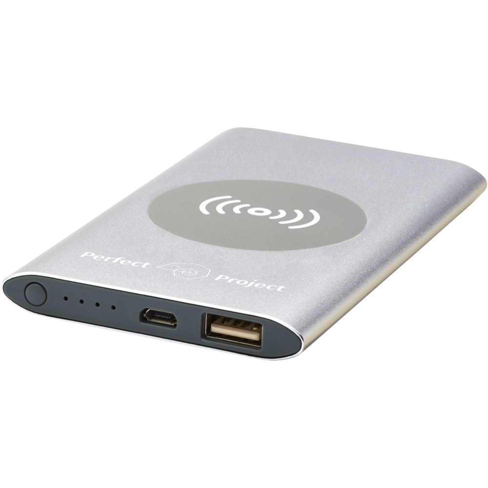 4000 mAh-s powerbank alumínium házzal. 5W vezeték nélküli töltést támogat, és a Micro USB kimenettel is rendelkezik, hogy lehetővé tegye a kábellel történő töltést. A 4000 mAh lítiumpolimer akkumulátorral egy okostelefon teljes töltésére alkalmas. Teljesítményjelzőjén követhető a töltöttségi szint. Micro USB port-in: 5V / 2A kimenet: 5v / 2a. Vezeték nélküli kimenet 5W. Tartalmazza a PVC-mentes TPE műanyag töltőkábelt. Csomagolása díszdoboz.