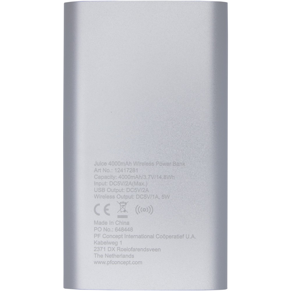 Juice 4000 mAh vezeték nélküli powerbank, ezüst