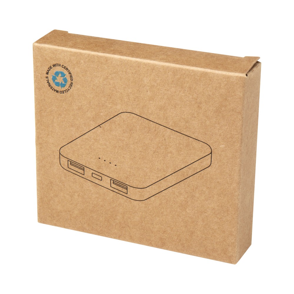 Karcsú és elegáns kialakítású powerbank, Type-C bemeneti/kimeneti porttal és 2 db USB-A porttal, amelyek lehetővé teszik három eszköz egyidejű töltését. A powerbank 5000 mAh kapacitású lítium-polimer akkumulátorral rendelkezik, amely max. 10W teljesítményt biztosít. A powerbank 23%-ban RCS tanúsítvánnyal rendelkező újrahasznosított műanyagból készült. TPE Type-C - USB-A töltőkábellel szállítjuk.