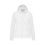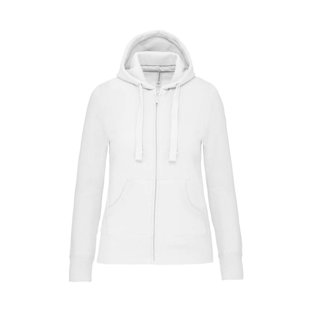 80% pamut és 20% poliészter. Belül bolyhos anyag, szürke színű szalagerősítés a nyakban, bélelt kapucni, kenguruzseb, bordás ujj- és derékpasszé, YKK cipzár. 300 g/m2. XS-2XL.