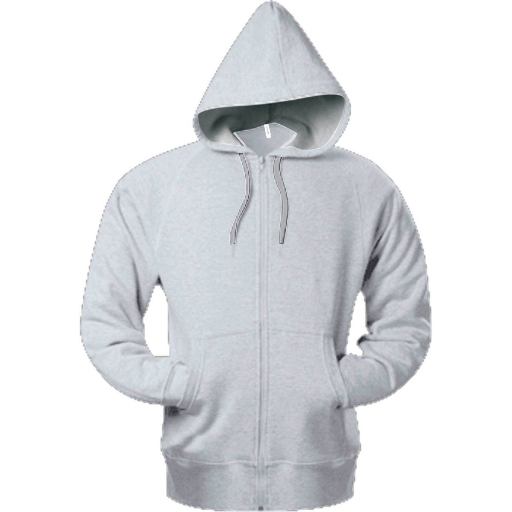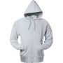80% pamut és 20% poliészter. Belül bolyhos anyag, szilikonos mosással kezelve. Szürke színű szalagerősítés a nyakban és kapucnibélés, kenguruzseb, bordás ujj- és derékpasszé, YKK cipzár. 360 g/m2.
