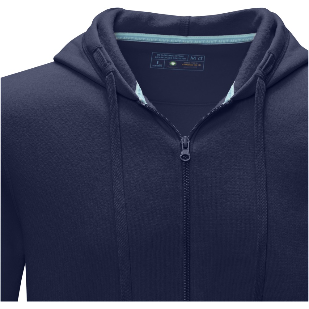 Kapucnis pulóver fenntartható, tanúsított organikus pamutból (a húzózsinór is) és GRS újrahasznosított poliészterből és cipzárral. Kenguru zseb. Belül bolyhos, puha anyag. Bordás ujjpasszé és alj. Kétszínű, márkázott szalagerősítés a nyakban. Félhold alakú betét a nyakban. 80% tanúsított organikus pamut és 20% tanúsított újrahasznosított poliészter, 280 g/m2.