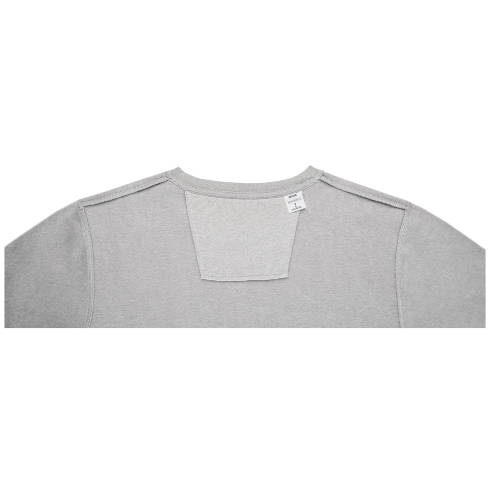Kereknyakú pulóver belső emblémázási lehetőséggel. Kitéphető címke. Lapos kötésű, bordás nyak-, aljpasszé és kézelő. Belül bolyhos, puha felület. Saját szövetből készült nyakszalag. 50% pamut és 50% poliészter, 240 g / m2.