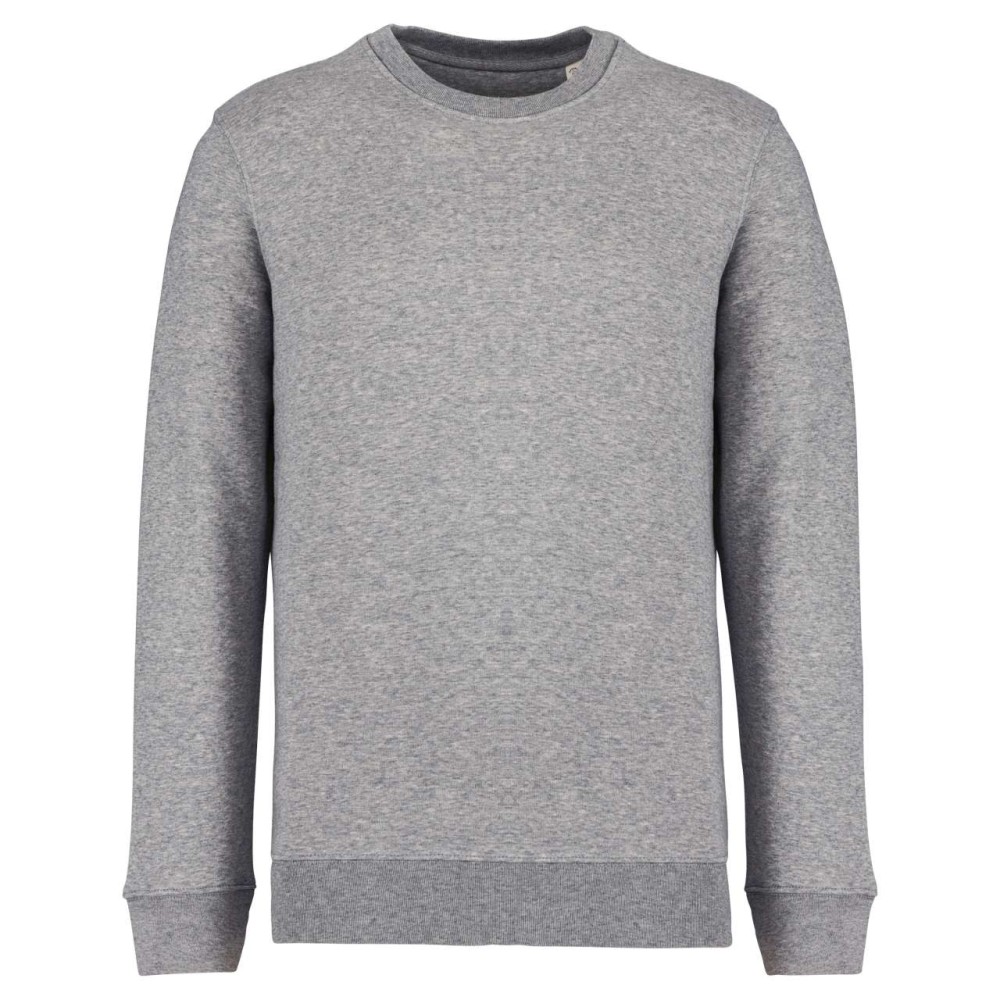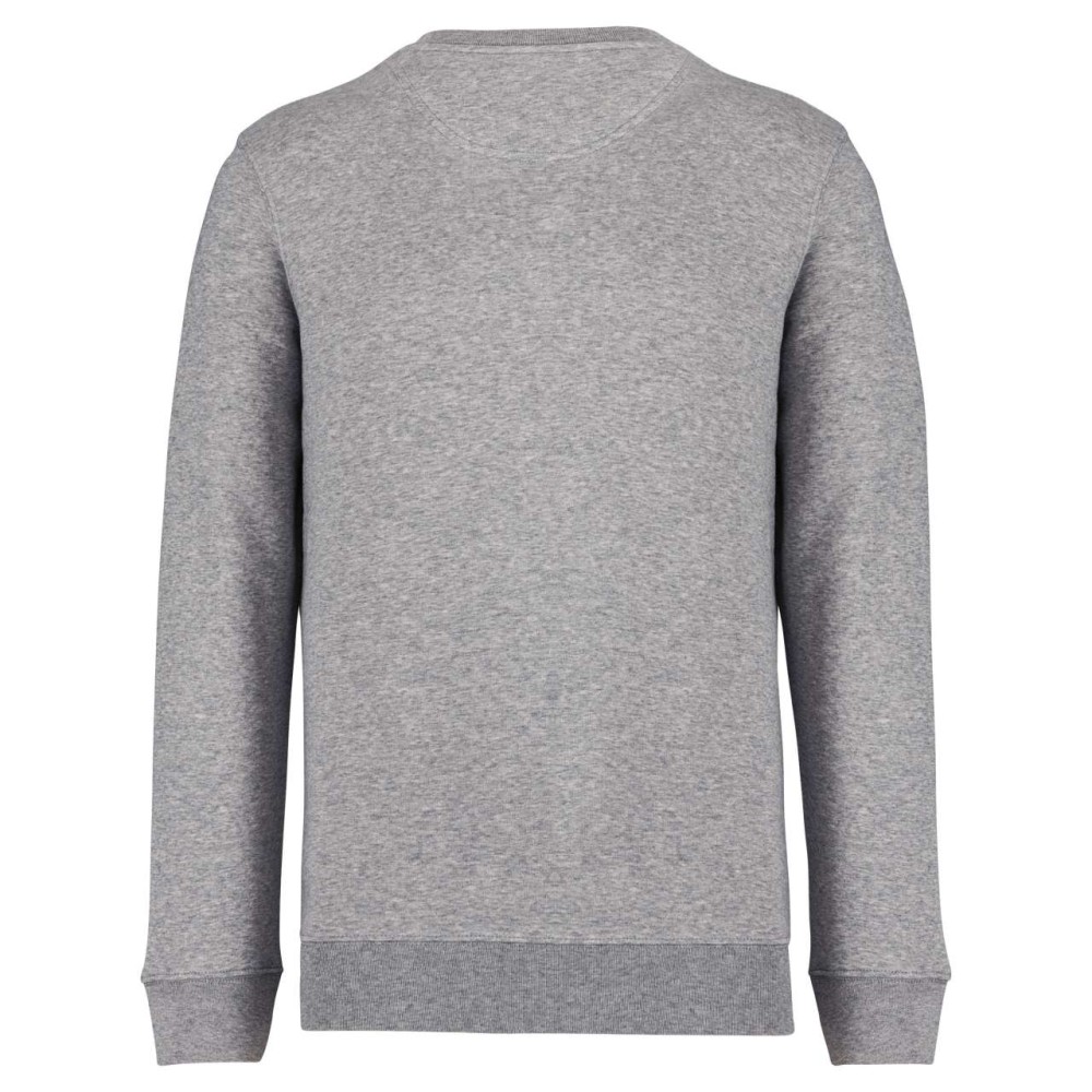 85 % bio, fésült pamutból és 15 % újrahasznosított poliészterből készült. Unisex. Egyenes szabás. LSF (Low Shrinkage Fleece: előzsugorított polár). Kerek nyakkivágás. Félhold alakú. Méretcímke organikus pamut és újrahasznosított poliészter logóval. 1x1 bordás nyakpasszé, alsó szegély és kézelő. Duplaöltés a kézelőn, karöltőben és kézelőn. Egyszeres felülvarrás a nyakkivágáson. Belső szalagozott nyakrész. A nyakrészen nincs márkajelzés, csak méretcímke a könnyebb dekorálás érdekében. A ruhadarabhoz kartonpapírból készült ismertetővel, amely felsorolja a felhasznált környezetbarát anyagokat. OEKO-TEX N CQ1007/7 STANDARD 100 tanúsítvánnyal rendelkezik. IFTH. 350 g/m2.