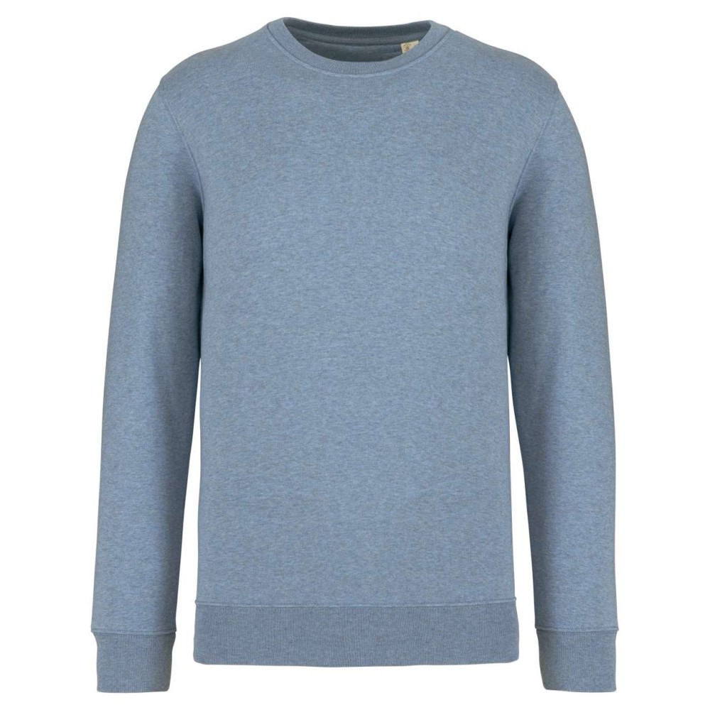 85 % bio, fésült pamutból és 15 % újrahasznosított poliészterből készült. Unisex. Egyenes szabás. LSF (Low Shrinkage Fleece: előzsugorított polár). Kerek nyakkivágás. Félhold alakú. Méretcímke organikus pamut és újrahasznosított poliészter logóval. 1x1 bordás nyakpasszé, alsó szegély és kézelő. Duplaöltés a kézelőn, karöltőben és kézelőn. Egyszeres felülvarrás a nyakkivágáson. Belső szalagozott nyakrész. A nyakrészen nincs márkajelzés, csak méretcímke a könnyebb dekorálás érdekében. A ruhadarabhoz kartonpapírból készült ismertetővel, amely felsorolja a felhasznált környezetbarát anyagokat. OEKO-TEX N CQ1007/7 STANDARD 100 tanúsítvánnyal rendelkezik. IFTH. 350 g/m2.