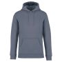 85 % bio, fésült pamutból és 15 % újrahasznosított poliészterből készült. Unisex. Egyenes szabás. Méretcímke organikus pamut és újrahasznosított poliészter logóval. LSF (Low Shrinkage Fleece: előzsugorított polár) kezelés. Kapucni. 1x1 bordás szegély és kézelő. Duplatűzés a kézelőn, a szegélyen és a nyaknál. Szalagozott nyakbelső hátul. Bélelt kapucni, a nyaknyíláson nincs felülvarrás, csak egy megkötés, hogy a húzózsinór a felső részen maradjon. Kerek húzózsinór a kapucnin fém véggel. Kenguru zseb. Nincs márkajelzés a nyakrészen, csak egy méretcímke a könnyű dekorálás érdekében. Karton függőcímkével érkezik, amely felsorolja a termék előállításához felhasznált környezetbarát anyagokat. Organikus pamutfonal. OEKO-TEX N CQ1007/7 STANDARD 100 tanúsítvánnyal rendelkezik. IFTH. 350 g/m2.